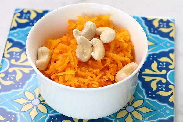 While blending, you can add little milk or water to blend to a fine paste. You can grind it to a coarse mixture too if you like it that way. Boil milk well, simmer for few minutes only then add carrot paste. You can skip cashews while grinding and add it as garnish too. Instead of cashews you can add almonds while grinding too but blanch it remove the skin then grind it along with carrots. You can even add a pinch of nutmeg powder for extra flavor. You can add 1/4 cup condensed milk for a rich kheer. In that case add just 2 tablespoon sugar. You can add ghee fried cashews or other nuts too. This kheer tastes good on its own but if you prefer you can add raw chopped nuts as garnish.